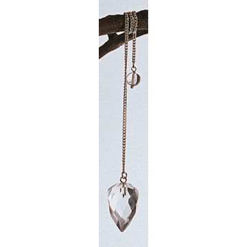 Pendul med slebet bjergkrystal. Om pendulering:Et pendul kan bruges på mange måder. Kort fortalt kan man sige, at et pendul kan være nyttig som hjælp til at opfatte det, som vi normal ikke kan sanse med vores 5 almindelige sanser.For eksempel: ”Hvordan har min underbevidsthed det med, at jeg træffer den eller den beslutning?” Det kan være nyttigt, at betragte det vi kalder underbevidstheden, som vores indre barn. Vægt: 0.012 kg Mål Pendul: 3 cm
