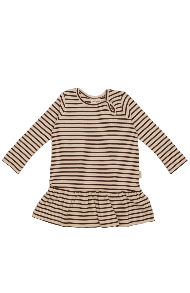 Sød langærmet kjole fra Petit Piao i dejlig blød og strækbar kvalitet. Farve : French Roast/Tapioka. Fremstillet i 48% økologisk bomuld, 48% modal, 4% elastan.