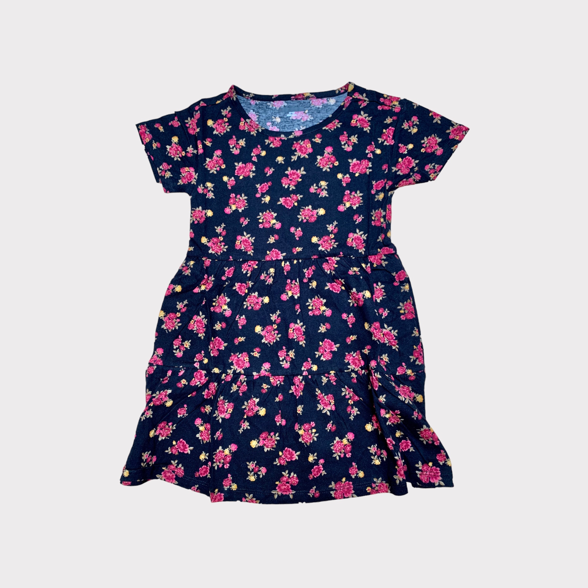 Super sød kortærmet sommerkjole med blomsterprint. Farve : Black Rose. Fremstillet i 100% bomuld.