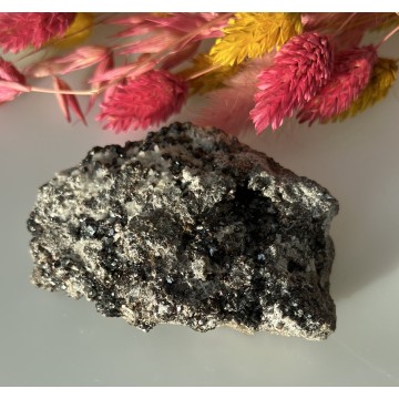 Cerussit kan bringe stor forandring ind i dit liv og er en god hjælper hvis du vil skabe stor forandring i din hverdag. Nøgleord: Livsformål, forandring og klarhed, Energier:Cerussit opmuntrer og støtter dig i at være mere sikker på dig selv, især når du træffer store (evt. økonomiske) beslutninger,Den kan give dig en forståelse af, hvorfor du netop er på Jorden nu og hvad dit livsformål er.Cerussit styrker jordforbindelsen og kan hjælpe dig med at forløse stress. Den bringer klarhed i tankerne samt en øget evne til koncentration. Affirmation: "Jeg kender mit værd og står op for mig selv" Chakra: Rod. Cerussit indeholder bly og må derfor ikke bæres direkte på huden. Vi anbefaler at du har den i en stofpose, når du arbejder med den i hænderne. Str.: 8 x 6 cm. 3 cm i højden. Vægt: 190 g.