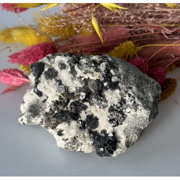 Cerussit kan bringe stor forandring ind i dit liv og er en god hjælper hvis du vil skabe stor forandring i din hverdag. Nøgleord: Livsformål, forandring og klarhed, Energier:Cerussit opmuntrer og støtter dig i at være mere sikker på dig selv, især når du træffer store (evt. økonomiske) beslutninger,Den kan give dig en forståelse af, hvorfor du netop er på Jorden nu og hvad dit livsformål er.Cerussit styrker jordforbindelsen og kan hjælpe dig med at forløse stress. Den bringer klarhed i tankerne samt en øget evne til koncentration. Affirmation: "Jeg kender mit værd og står op for mig selv" Chakra: Rod. Cerussit indeholder bly og må derfor ikke bæres direkte på huden. Vi anbefaler at du har den i en stofpose, når du arbejder med den i hænderne. Str.: 8 x 6 cm. 3 cm i højden. Vægt: 300 g.
