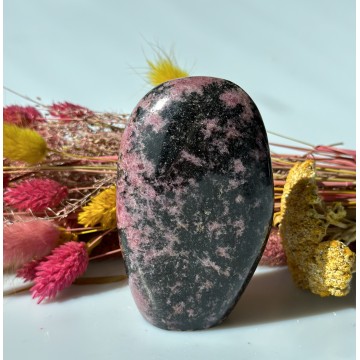Rhodonit, du får den som er på billedet. Nøgleord: Harmoni, fred, tillid og optimisme Energier: Rhodonit er en krystal, der udstråler en stærk og beroligende energi. Den hjælper dig med følelsesmæssig smerter og skaber balance heri. Den skaber tillid og optimisme i dit liv, når du giver dig hen og arbejder sammen med denne skønhed. Den er genial, når du skal tage store beslutninger i dit liv, så som i dine relationer, karriere eller personlige livsændringer. Den kommer med en energi af frygtløshed og lidenskab i alt, hvad du foretager dig i dit liv, så du ikke lader dig begrænse i din udvilkling. Den vil styrke dit hjerte og vise dig, hvor stærk du kan være, selv i det, du måske tror er dit svageste punkt. Vi anbefaler alle der har mangel på selvtillid at bruge denne krystal. Du får ikke kun øje på problemerne i dit liv, men også hvordan du kan løse dem bedst muligt. Selvom rhodonit hovedsageligt arbejder med dine hjerte- og rodchakraer, tilbyder den også utrolige psykiske evner. Rhodonit vil forstærke og give klarhed til ens indre oplevelser, uanset om det er under dybe meditationssessioner eller blot ved at drømme. Gennem denne klarhed hjælper rhodonit med at oversætte billederne af disse drømme og bringe dem ned på et jordisk niveau for at give en vej, hvor disse "drømme" kan forstås eller opnås. Det anbefales at sætte denne rhodonit freeform ved din seng for at stimulere disse psykiske evner fuldt ud. Affirmation:"Jeg genfinder roen i mit hjerte. Jeg slipper smerten og finder fred." Chakra: Rod og hjertet Mål: 9 x 6 x 4 cm Vægt: 400 – 500 g Prisen er pr. stk. Vores sten og krystaller er af højeste kvalitet, da alle bliver nøje udvalgt. Men alle er ikke ens, så der kan forekomme forskelle i udseende, størrelse og ujævnheder.