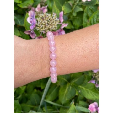 Rosakvarts Armbånd Nøgleord: Ro, Kærlighed og Harmonie. Energier: Kærlighedssten. Kærlighed er en vigtig del af livet. Udsender stærke vibrationer af kærlighed, lykke, varme og følelsesmæssig balance. Hjælper med at finde ægte kærlighed. Hjælper med at genkende træk hos mennesker som ikke har gode intentioner eller på uærligvis gengælder den kærlighed, de modtager. Formen gør det med lethed muligt at indtage alle negative energier og omdanner dem til blid kærlighedsenergi. Kan lægge en "Bobbel" om personer så negativ energi preller af, og kun gode energier slipper igennem. Styrker personligheden. Den opfanger stråling fra tv, smartphone og computer og omdanner disse til positiv energi, så den er god at have liggende på sengebordet mellem din mobil og dig, eller ved siden af dit tv eller computer. Afhjælper stress, depression og tungsind. Fjerner mørke og dystre tanker. God mod hjertet, blodcirkulationen, immun- og lymfesystemet. Krystallens str.: 8 mm. Armbåndet er lavet på en smykke elastik som gør det nemt at tage af og på. Armbåndet er ca. 16 til 19 cm/one-size.
