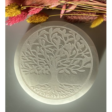 Rund selenit plade livets træ – Selenit – GodKarmaShop