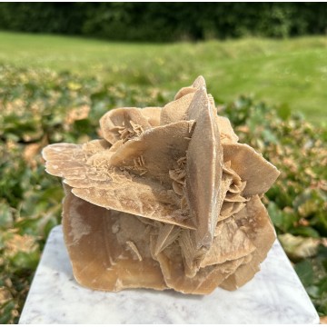 Denne Sandrose er unika, så den du ser på billedet er den du får. Sandrose, også kendt som ørkenrose eller gipsrose, er en naturligt forekommende mineralformation, der typisk findes i ørkenområder. Sandroser dannes, når vand, der indeholder mineraler som gips eller baryt, fordamper under tørre ørkenforhold. Dette fører til krystallisering af disse mineraler sammen med sandkorn, hvilket giver formationerne deres karakteristiske roselignende udseende.I nogle kulturer betragtes sandroser som symboler på tålmodighed og skønhed, der opstår under vanskelige forhold, en påmindelse om naturens evne til at skabe skønhed selv i de mest udfordrende miljøer. Nøgleord: Skønhed, klarhed og styrke. Energier: Sandroser siges at fremme mental klarhed, samt øge styrke og helbredelse. Den bliver bl.a. brugt til meditation for at frigive mentale blokeringer. Den menes at have en stemningsløftende, kreativitetsfremmende og koncentrationsfremmende effekt. Hvis du placerer den nær din seng, vil sandrosen hjælpe dig til at få en fredelig og afslappende søvn. Sandrosen kan hjælpe med at reducere energetiske processer i krop og sind, og dermed give mere stabililitet og balance mentalitet, hvilket kan være særligt givende for mennesker med høj sensitivitet. Affirmation: "Min indre styrker viser mig vejen til fred" Vægt: 450 g. Mål: 14 x 11 x 10 cm Vores sten og krystaller er af højeste kvalitet, da alle bliver nøje udvalgt. Men er ikke ens, så der kan forekomme forskelle i udseende, størrelse og ujævnheder.