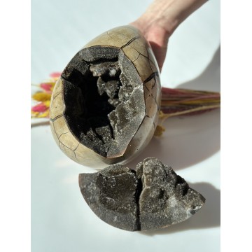 Septarie den du ser på billedet er den du får. Nøgleord:Beskytter, styrker og samarbejder Energier: Septarie beskytter dig og er super god, når der opleves kriser i dit liv. Den forhindrer dig i gang på gang at gentage fejltagelser i dit liv, ved at give dig en indsigt i fejlene, og lære af dem. Hvis dit temperament er i voldsomt udbrud, mildner septarie krystallen dig ved at sende mildnende og rolige energier til dig. Den styrker dig, når du føler dig svag og giver dig et skønt spark af mod og kraft til at handle i svage øjeblikke. Septarie er en fantastisk krystal, der hjælper dig med at være effektiv i problemløsnings situationer. Den fremmer dine samarbejdsevner og mildner tendensen til at have brug for at at vise "Jeg ved alt" attituden. Den styrker dig i din selvtillid og overfører dig en beroligende energi. I forhold styrker den dit ønske om også at have et privatliv, og at dette er mere end okay. Chakra: Rod Numerologi: 8 Mål: H: 22 cm, B: 15 cm, D: 15 cm Vægt: 5,8 kg Vores sten og krystaller er af højeste kvalitet, da alle bliver nøje udvalgt. Men ikke ens, så der kan forekomme forskelle i udseende, størrelse og ujævnheder.