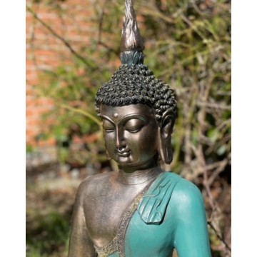 Buddha i turkis/grøn med glimmer – Buddha statuer generelt – GodKarmaShop