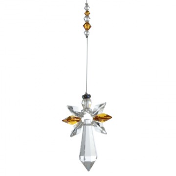 Der er også 5 små swarovski krystaller på snoren. Håndlavet i England, vores strålende engel i funklende swarovski krystal, er lavet ved hjælp af kun Swarovski-krystaller af højeste kvalitet og betragtes som vores 'deluxe' engel. Englens betydning: Kærlighed, succes, troskab Skab Feng Shui med denne smukke Woodstock engel krystal i hjemmet, på kontoret eller hvor du har brug for gode energier. Hver engel kommer med en forklaring på sin farvebetydning. Farve: klar og mørke gul. Betydning: Topaz: Kærlighed, succes, troskab, Love, Success, Fidelity. Skytsengel: Kærlighed, vejledning, beskyttelse. Mål: 18,5 cm lang med kæde. Engel: B: 3,7 x H: 6 cm. Den leveres med en organza-gavepose. Anbefales til indendørs brug. Woodstock krystal solfanger – de gør for lys, hvad vindklokker gør for lyd.