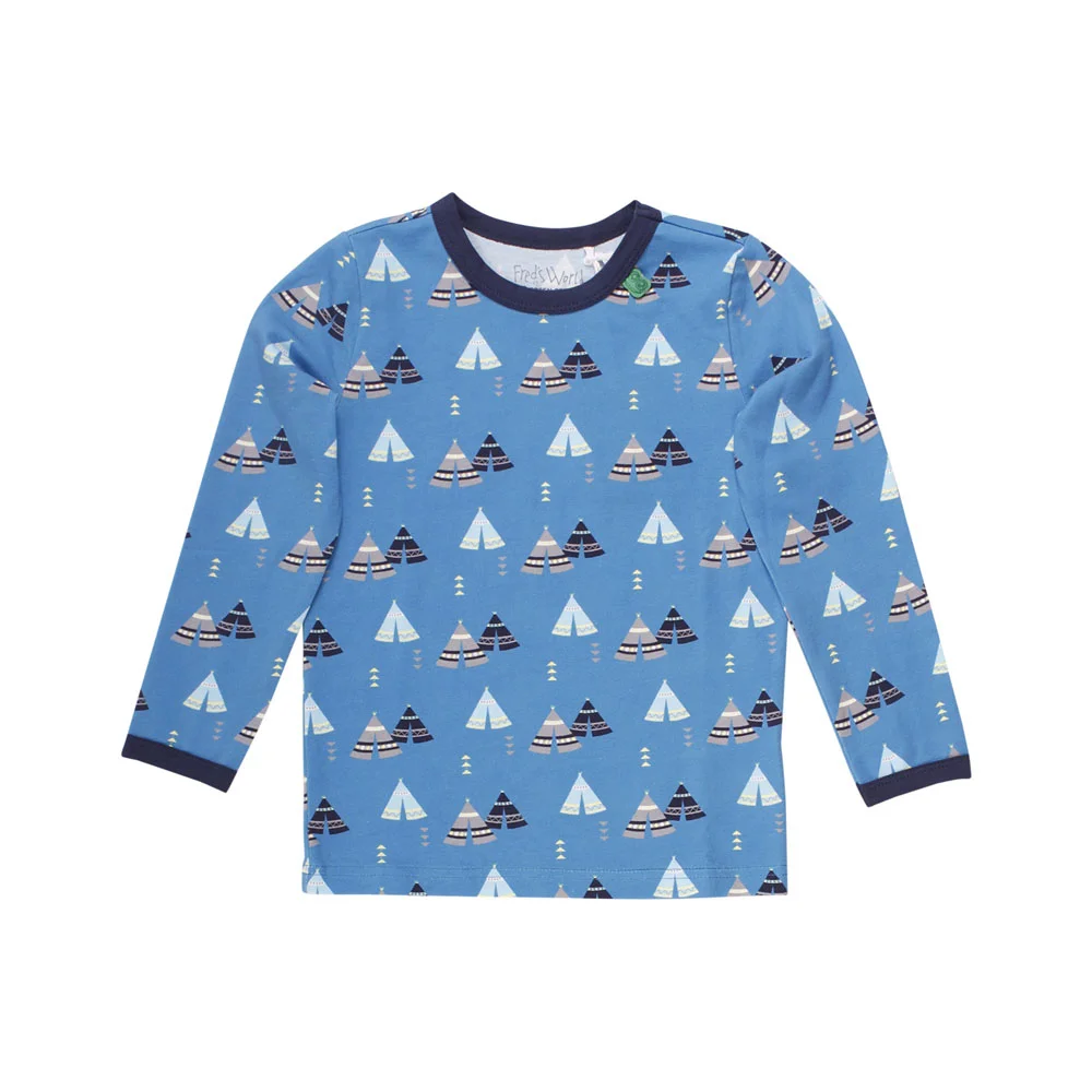 Super fin langærmet bluse til de mindste. Med flotte motiver og praktisk trykknapluk ved halsåbningen. Farve : Dove Blue. Fremstillet i 95% bomuld, 5% elastan.