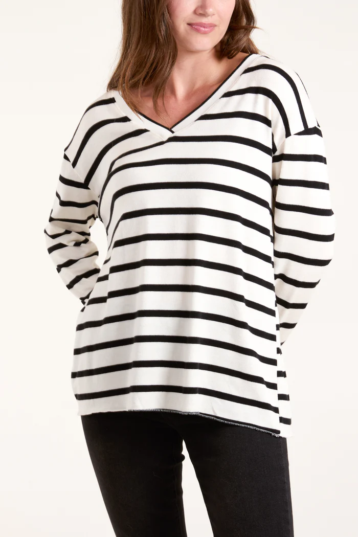V-neck Stribet Bluse Sort (Størrelse: Onesize)