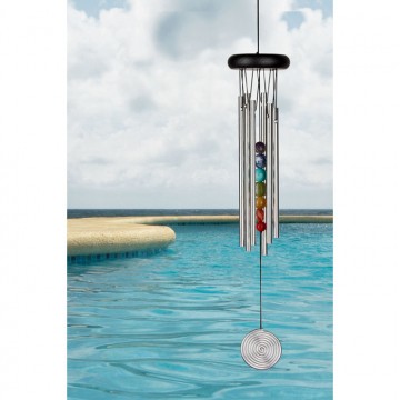 Woodstock chakra vindklokke "Seven Stones".Mellem vindklokke.Længde: 46 cm. Bemærk at længden er målt fra toppen af ophænget og til bunden af pendulet! Smukt stemte vindklokker til afbalancering af alle kroppens vigtige energicentre.
