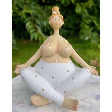 Naturlig skønhed: Figuren fremhæver kroppens kurver med stolthed og giver et stærkt, realistisk billede af kvindelig styrke og ynde. Inspiration til mindfulness: Easy Pose symboliserer ro og meditation, hvilket gør denne skulptur til en påmindelse om at finde indre balance og fred i hverdagen. Håndlavet kvalitet: Med detaljeret udførelse og en blød finish er denne figur et imponerende kunstværk, der passer perfekt ind i både moderne og traditionelle hjem. Et symbol på selvkærlighed: Denne skulptur fejrer diversitet og kropspositivitet, hvilket gør den til en opløftende tilføjelse til dit hjem eller yogastudie. Perfekt gaveidé: Overrask en yoga-entusiast eller en ven med en meningsfuld gave, der kombinerer både kunst og spirituel betydning.Mål: H: 17 cm. B: 13 cm. Materiale: Polyresin Vægt: 209 g. Farve: Hvid, brun, beige