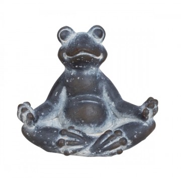 En charmerende, mediterende frø. Selve figuren kan holde til at stå udendørs (dog ikke frostbestandig). Yoga frøen elsker at dyrke yoga. Her sidder han i lotusstilling. Lotusstillingen er enkel, men ikke desto mindre kræver den alligevel, at frøen er smidig. I forskellige gamle kulturer har frøen en betydelig symbolsk og mytisk status. I egyptisk mytologi var den frøhovedede gudinde Heqet for eksempel forbundet med frugtbarhed og fødsel.I kinesisk kultur er frøen knyttet til månen og menes at bringe helbredelse og velstand.I indianske traditioner ses frøen ofte som en spirituel guide eller totem, der bringer regn og frugtbarhed. Farve: Grå med brunlige nuancer. Materiale: keramik Mål: H 13cm x B: 15cm Vægt: 0,32 kg